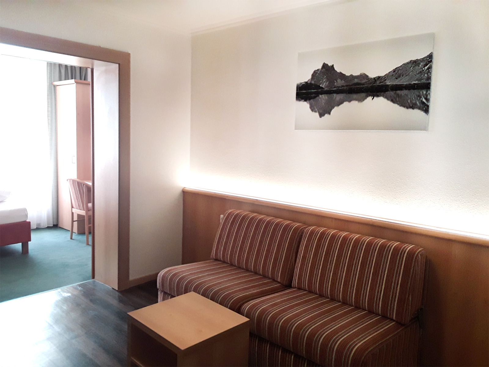 freundliche, gemütliche und geräumig eingerichtete große Familienzimmer, in Fichtendekor möbliert